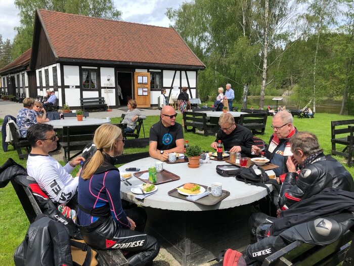 Jeg talte 13 vakre Ducatier og 14 personer som ble med på tur til Desmolab i dag. Selv om noen dråper traff enkelte før oppmøte på Tyrigrava, så forløp turen i deilig vær. Ved staselig ankomst Desmolab ble vi servert deilig grillmat med egne kokker. Patrik holdt et lite foredrag om hva han driver med på dette spesialverkstedet. Veldig interessant for oss og med en så lang erfaring som han har med å skru DUCATI, er det artig å høre hva han har å fortelle. Takk til Patrik, fru Ida og kokkene fra Gøteborg 😁