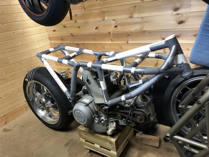 På oppfordring skal jeg her forsøke å dokumentere litt av mitt nye Prosjekt. Jeg har lenge drømt om å bygge en cafe-racer. Problemet er at jeg «må» ha en Ducati-kjerne, og det er ingen Ducati som har den formen på ramma som jeg ønsker. Derfor har jeg ikke funnet motivasjonen til å komme i gang. Men etter å ha sett Per Jenssen lage sin egen ramme, våknet drømmen igjen.