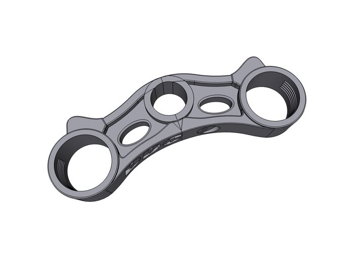 Etter noen runder på hodeputa, har jeg kommet til at jeg heller skal få laget en bottom yoke som jeg kan bruke på den stem´en jeg har fra multien. Da kan jeg kanskje lage en fin en som gir litt personlig preg til sykkelen. Det er en kar i nord-Trøndelag som har cnc-maskin, og som lager en del sånne snadder-saker. Så de siste dagene har jeg begynt å leke meg med 3D-tegning. Etter et par dager har jeg klart å lage et par varianter. Det er utrolig hva man kan gjøre med en iPad altså... 🙂